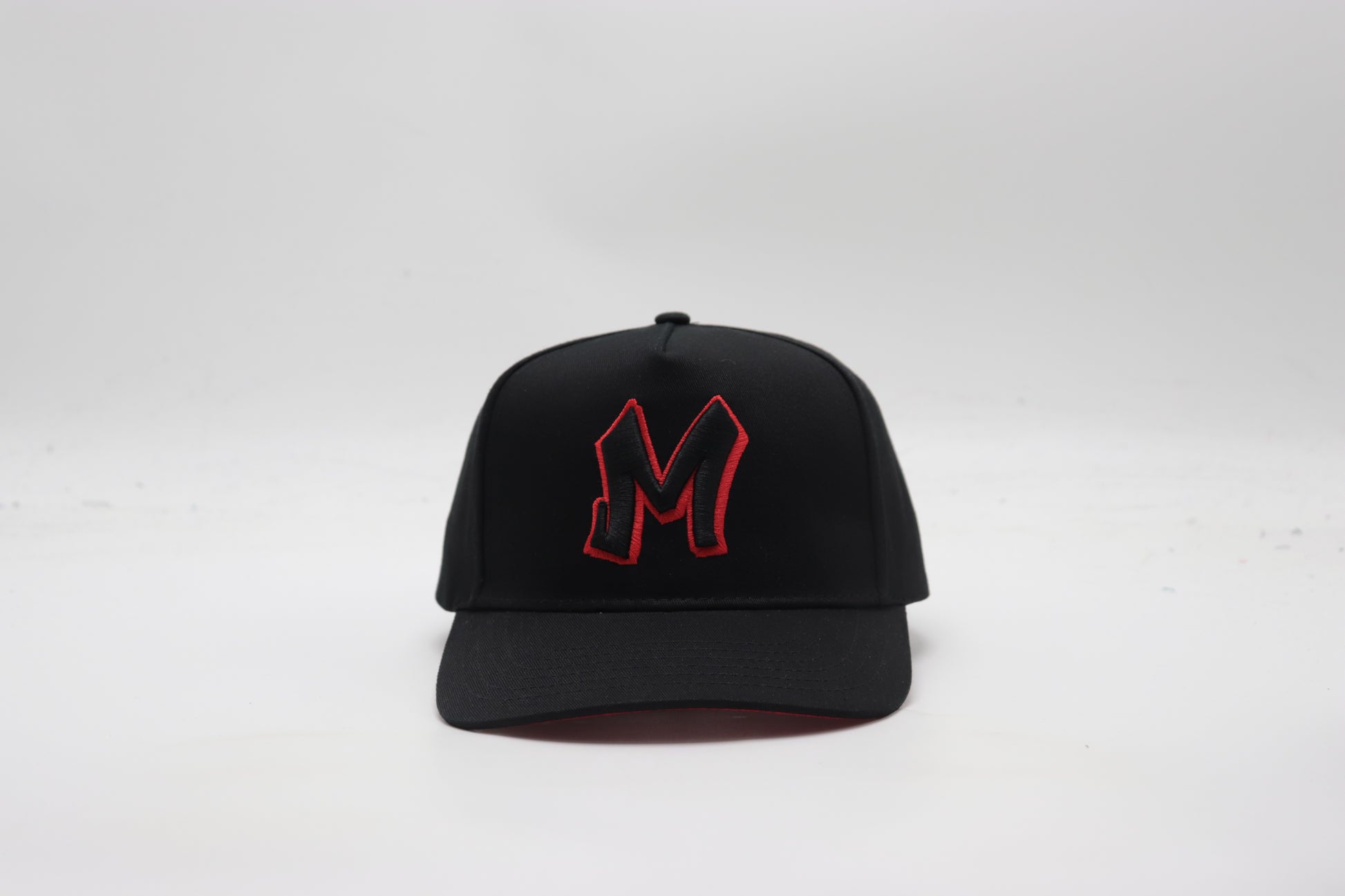Elevate your headwear game with our signature Black M Logo Cap with Red Stitch contrast. Crafted for timeless style and comfort, this cap features a bold black and white embroidered M logo on the front, adding a sharp contrast to the sleek all black design. Whether you're dressing up or keeping it casual, this cap delivers effortless edge and everyday wearability. Adjustable fit. One size fits most.