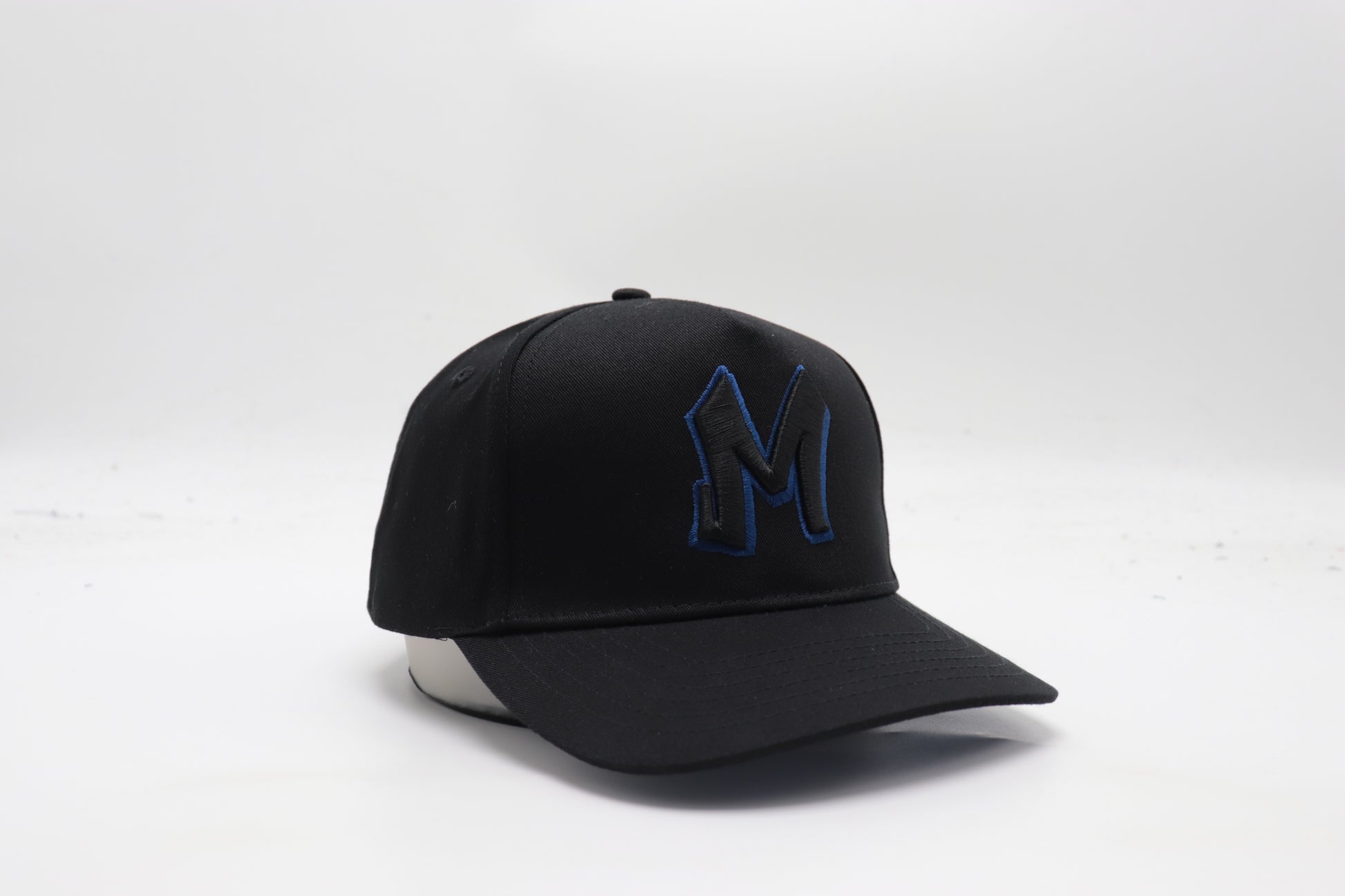 Elevate your headwear game with our signature Black M Logo Cap with Royal Blue Stitch contrast. Crafted for timeless style and comfort, this cap features a bold black and white embroidered M logo on the front, adding a sharp contrast to the sleek all black design. Whether you're dressing up or keeping it casual, this cap delivers effortless edge and everyday wearability. Adjustable fit. One size fits most.