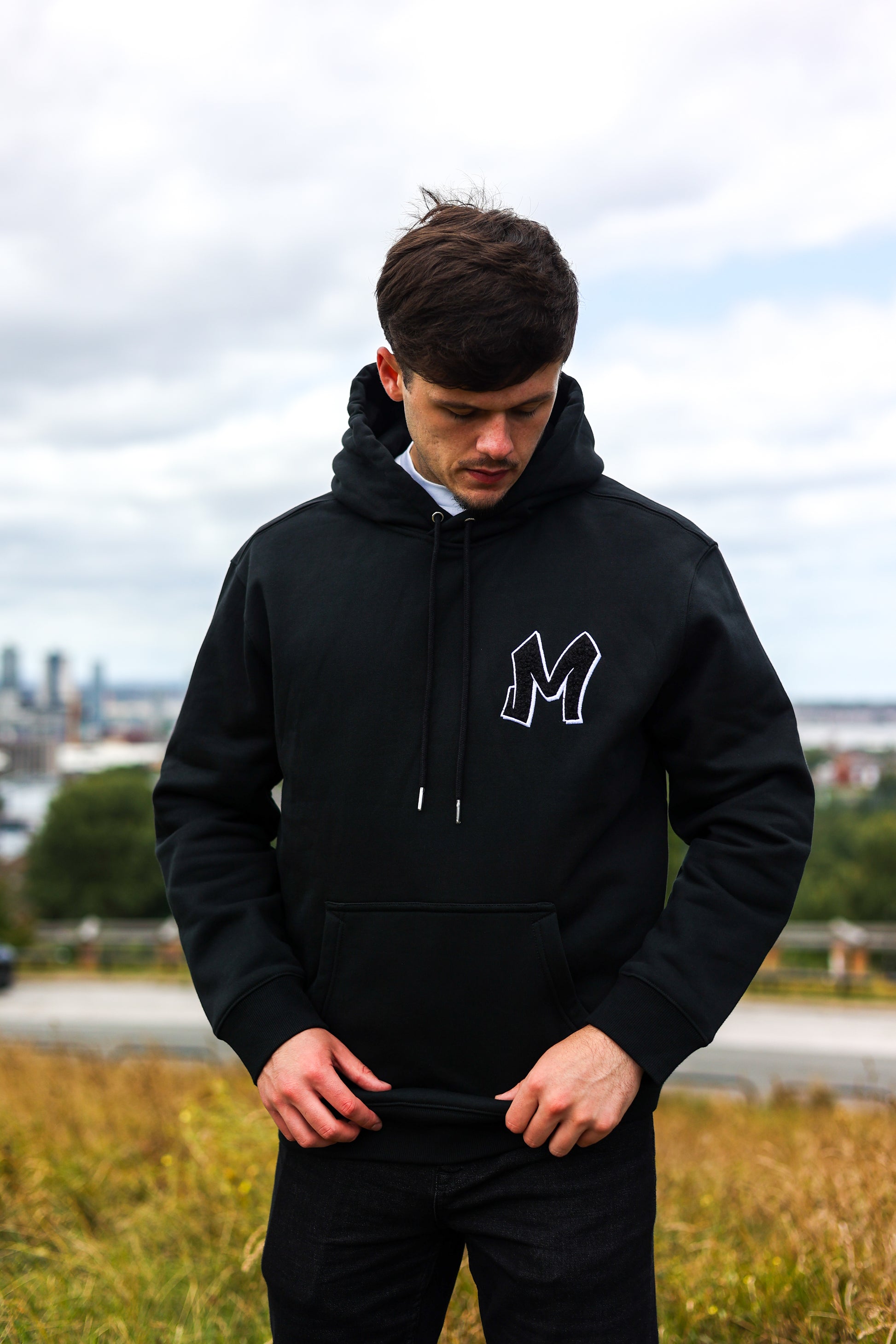 Sleek, simple, and standout-our Black M Logo Hoodie features a striking black and white patch embroidery on the crest. Crafted from a high-quality cotton blend with a soft fleece interior, this hoodie offers a comfortable fit with a clean, modern edge. Finished with an adjustable hood for a refined everyday look.